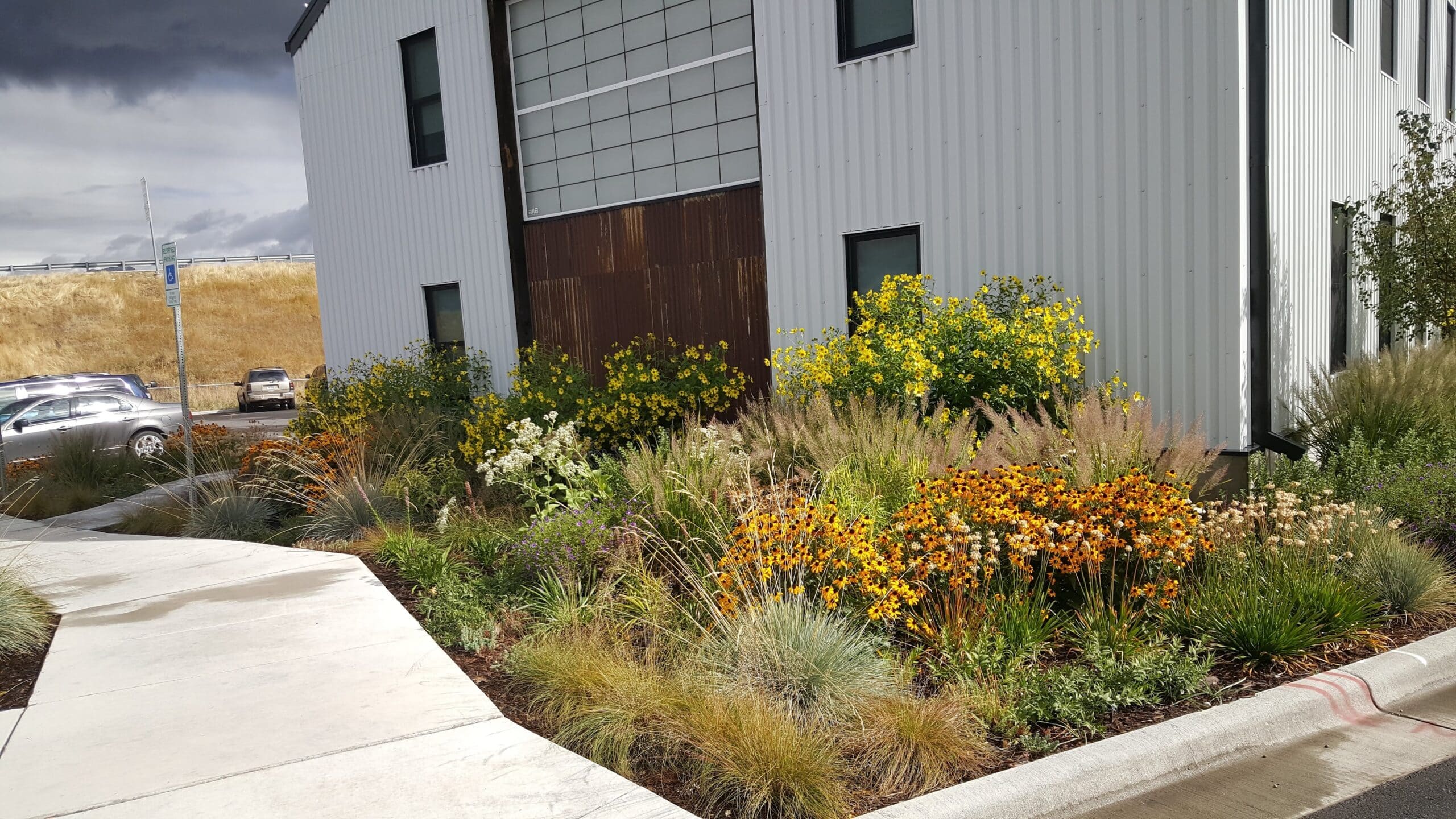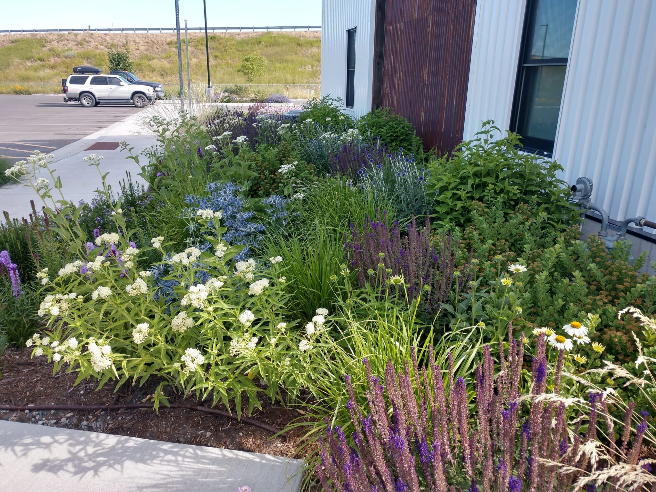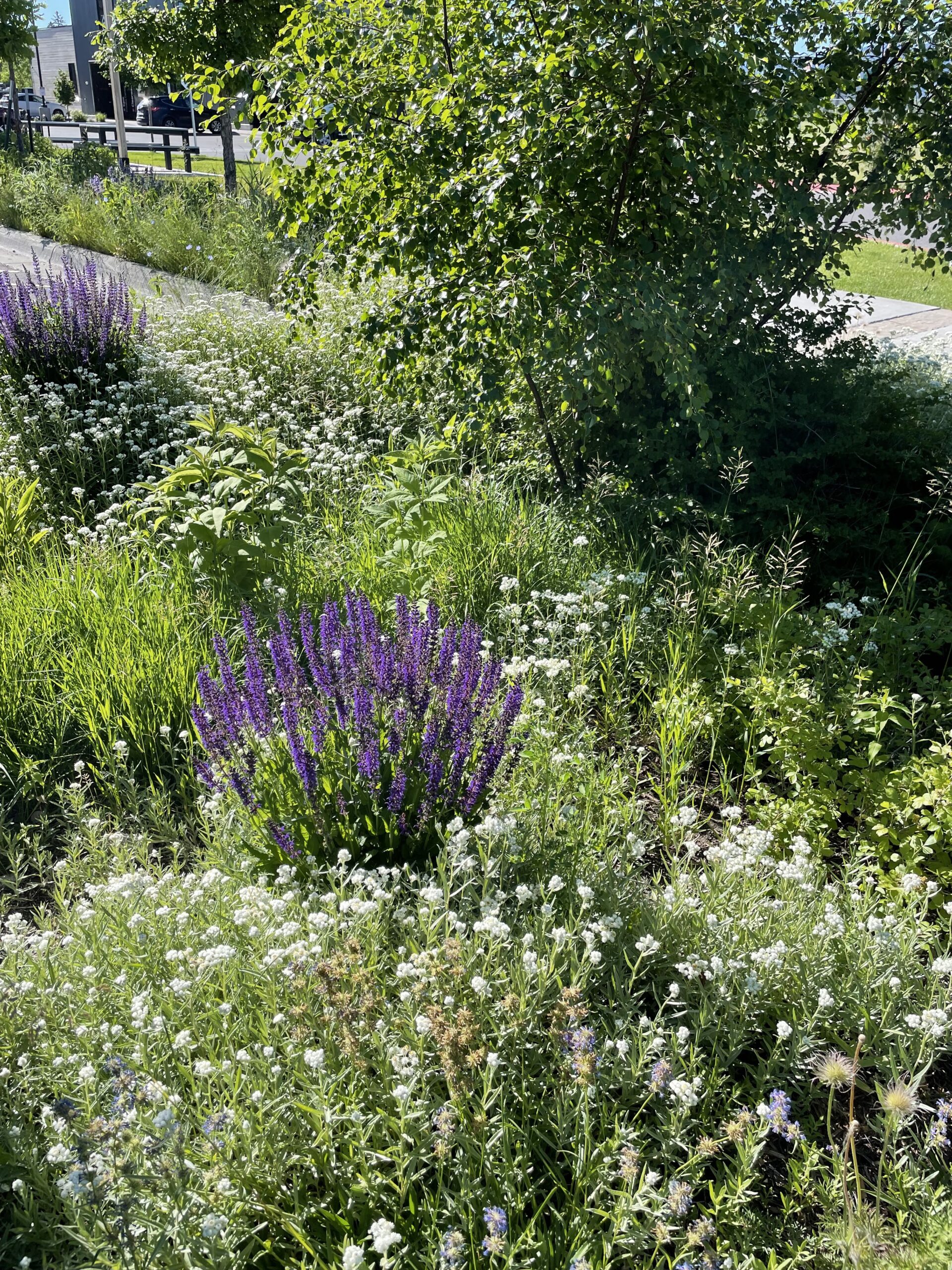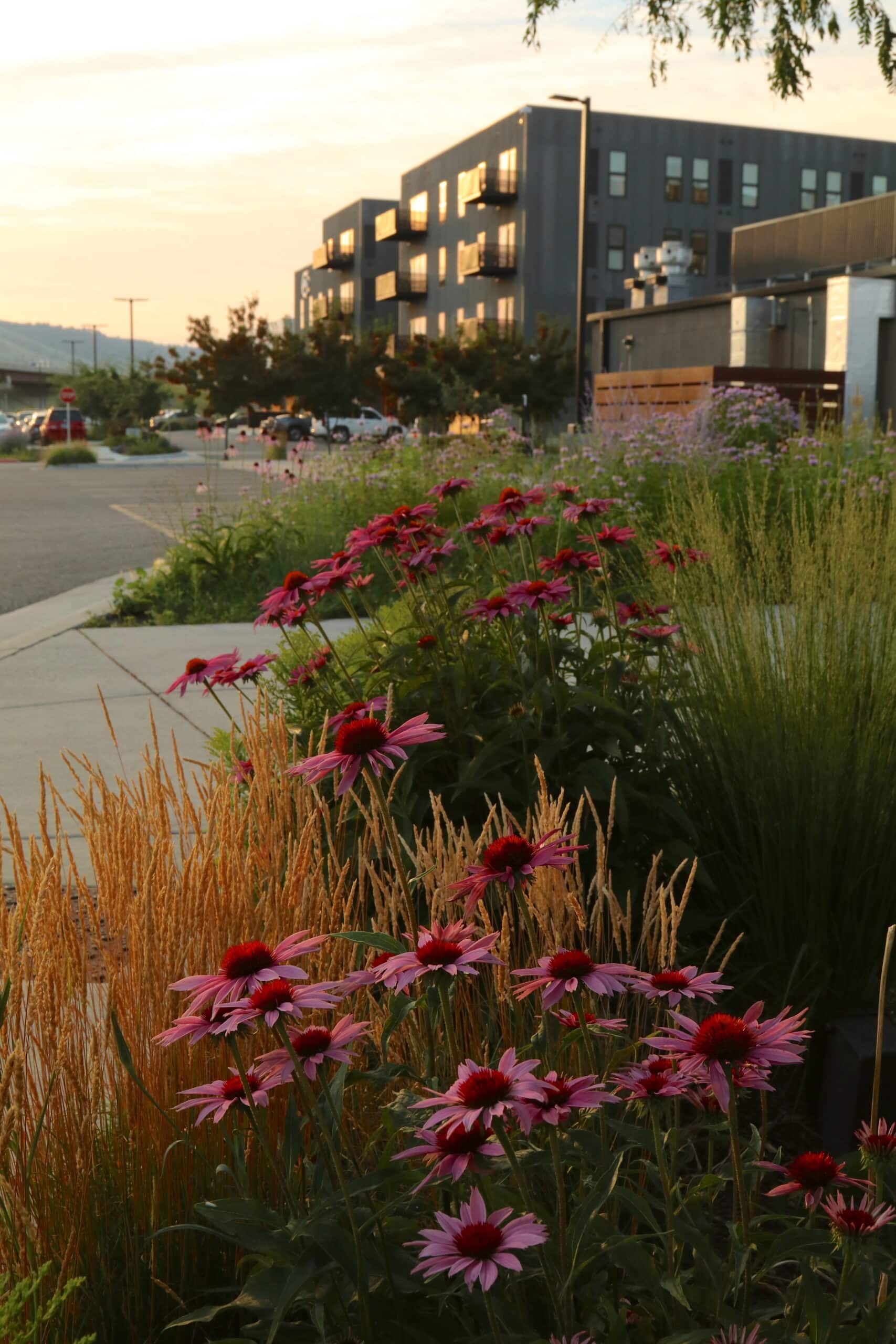 The use of native and drought-tolerant plants in the Cannery District is a bellwether for what can be done in a water-starved West. Six bioswales gather and filter water from parking lot runoff. Adapted shade trees provide shelter and help to reduce the urban heat-island effect. Drought tolerant lawns provide outdoor recreation areas with minimal water use. Native wildflowers provide pollinator-friendly beauty that celebrates Montana in all seasons.