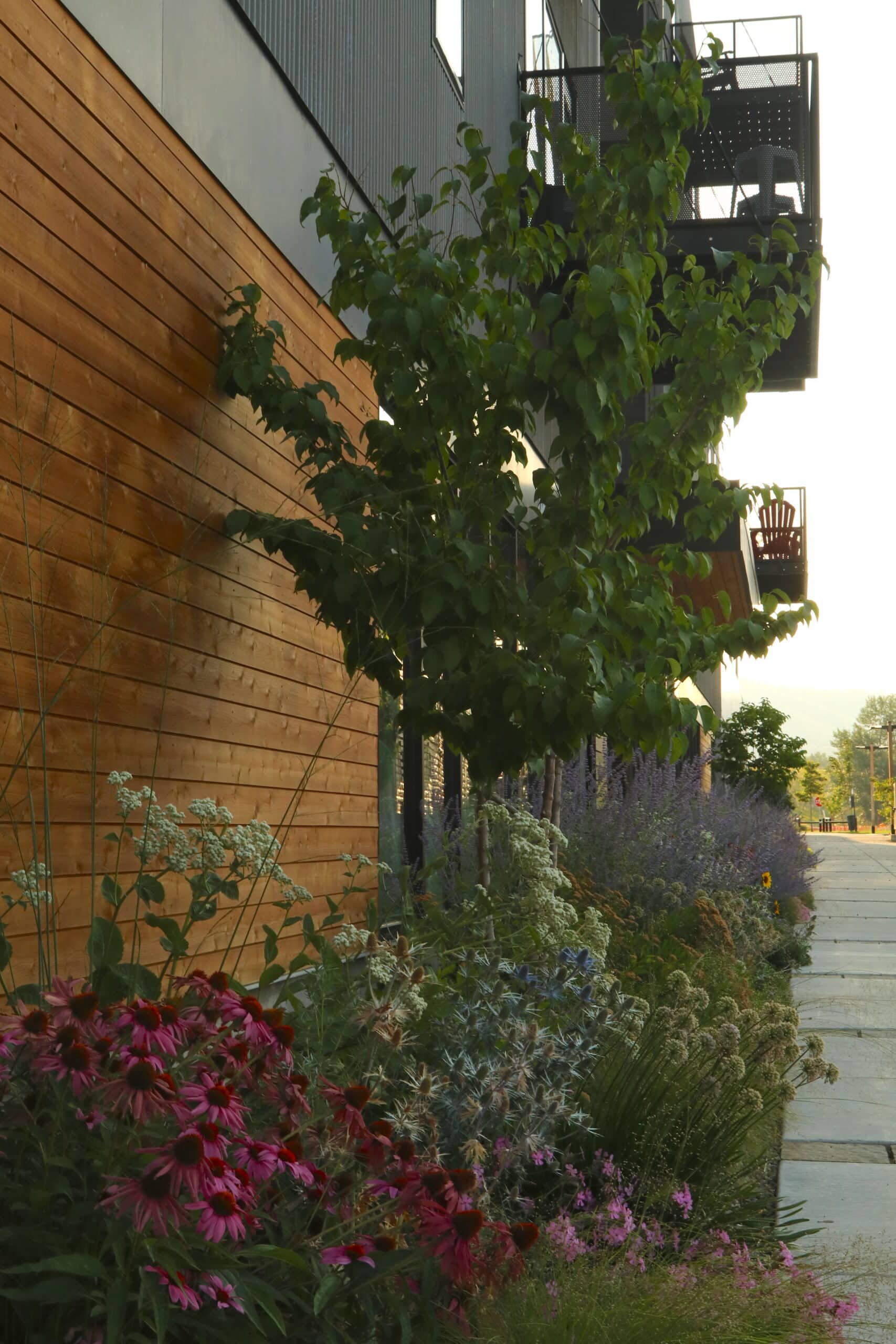 A large multi-year mixed-use commercial project, the Cannery District required a coordinated effort between Valley of the Flowers Landscaping and the construction and design teams. We collaborated with Linda Iverson Landscape Design to focus on creating inviting outdoor spaces using regionally appropriate plantings, clean lines, and durable materials suited to Montana’s climate.