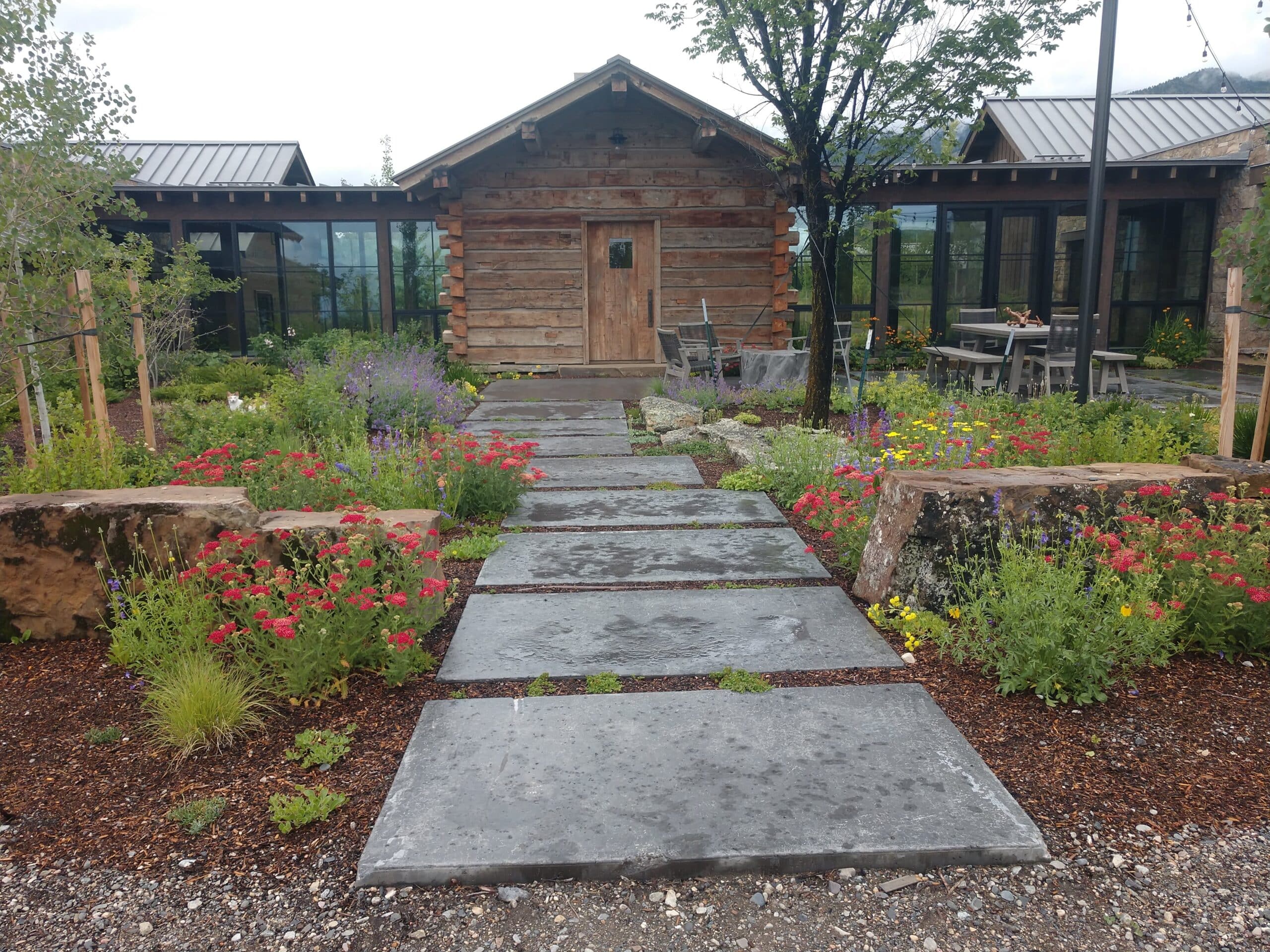 At the Corbly Retreat in the Bridger Mountains, Valley of the Flowers Landscaping crafted a striking outdoor environment that blends natural beauty with functionality. The design features durable hardscaping, layered rock gardens, and native Montana plants. Thoughtfully arranged seating areas and pathways create inviting spaces for relaxation and entertaining, while the landscaping enhances the home’s connection to its rugged mountain surroundings. This project showcases expert residential landscaping in the Bridgers, combining aesthetics, sustainability, and long-term usability.